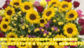 ひまわりいっぱいのくまちゃんぬいぐるみ入りアレンジ、通常1匹でお作りしてますがこちらは2匹仲良く座ってます♡